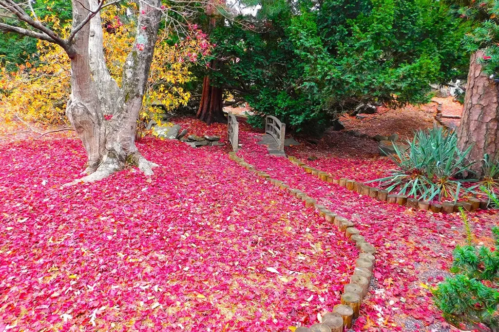 The gardens were built to harmonize with the natural landscape, integrating existing Pine Barrens trees into formal European and Japanese designs. When sandy local soils proved unsuitable for exotic plantings, thousands of train carloads of rich loam were brought in to support the vision. The result was a rare landscape where native pinelands species and carefully curated ornamental trees have grown side by side for generations.