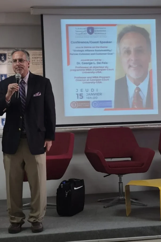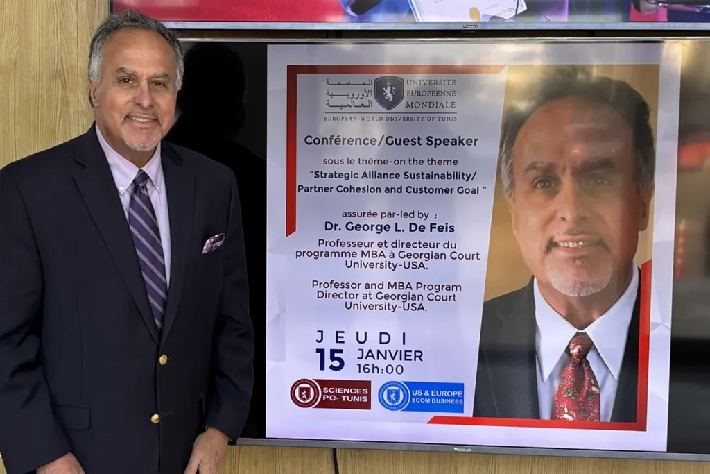 Dr. George De Feis, D.P.S., Assistant Professor of Business Administration and MBA Program Director at Georgian Court University, recently completed a Fulbright Specialist assignment in Tunisia, partnering with the Université Européenne-Mondiale de Tunis and presenting at the American Corner of the U.S. Embassy in Tunis.