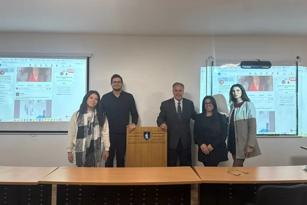 To conclude his visit, Dr. De Feis led an in-person workshop titled “Leadership and Innovation in Business” at the American Corner Tunis in collaboration with the U.S. Embassy. The session explored entrepreneurial strategy and cross-cultural leadership through global case studies, challenging participants to consider how local enterprises can compete and lead in interconnected economies.